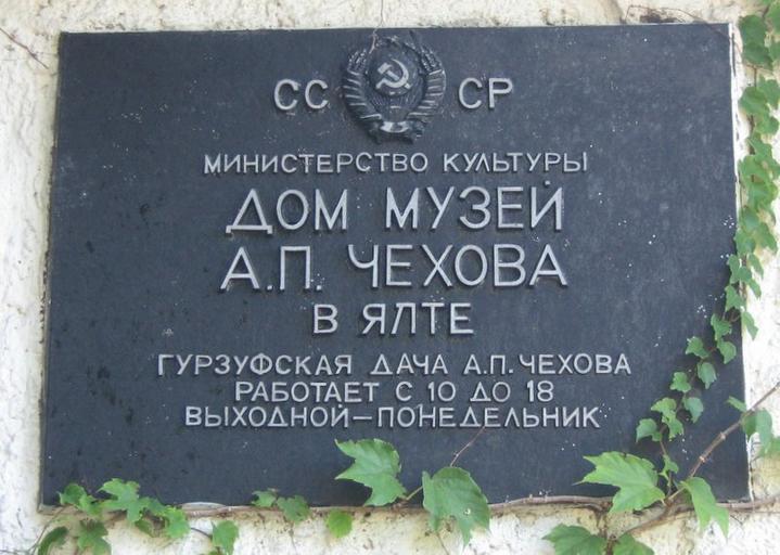 Keywords: Дача Чехова (вивіска музею).JPG uk Вивіска музею own Kamelot 18 се пня 2009 Cottage Chekhov in Gurzuf