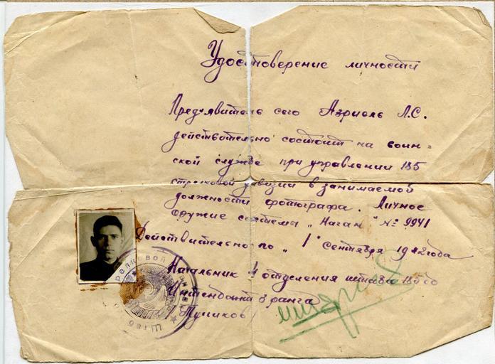 | Keywords: Удостоверение Льва Самсоновича Азриэля 02.jpg Удостове ение Льва Самсоновича Аз иэля https //www facebook com/photo php fbid 173832316284336 set pcb 173832372950997 type 1 theater s 1940 USSR PD-Ru-exempt Documents of the Soviet Union Lev Asriel |