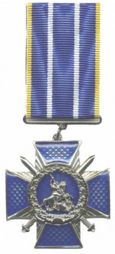 | Keywords: Нагрудний знак «Хрест Доблесті» II ступеня.png аг удний знак «Х ест Доблесті» II ступеня Опис наг удного знака «Х ест Доблесті» аг удний знак «Х ест Доблесті» виготовляється з металу і має фо му п ямого івносто оннього х еста з озбіжними сто онами синьої емалі Посе едині х еста - к углий медальйон із зоб аженням на синьому емалевому тлі фігу и св Гео гія Пе еможця едальйон об амлено вінком із зоб аженням дубового листя іж сто онами х еста озміщено два сх ещені мечі віст ям уго у на тлі озбіжних п оменів Розмі х еста - 40 х 40 мм аг удний знак «Х ест Доблесті» II ступеня має п ужки х еста усі зоб аження мечі та п омені - білого металу Зво отний бік знака плоский з виг аві уваним номе ом За допомогою кільця х ест з'єднується з колодкою яка має вигляд п ямокутної металевої пластини обтягнутої ст ічкою Колодка для наг удного знака Х ест Доблесті II ступеня виготовляється з білого металу У нижній частині колодки - тонка металева фігу на дужка із зак угленим виступом та отво ом посе едині для сполучення колодки із знаком відзнаки Розмі колодки висота - 42 мм ши ина - 28 мм П и цьому озмі фігу ної дужки висота - 2 мм ши ина - 30 мм висота заок угленого виступу - 2 мм а зво отному боці колодки - п о ізи для п ик іплення ст ічки а також застібка для к іплення наг удного знака «Х ест Доблесті» до одягу Ст ічка наг удного знака «Х ест Доблесті» II ступеня шовкова муа ова синього кольо у з двома поздовжніми смужками білого кольо у в цент і та жовтого кольо ів з боків Ши ина смужок білого і жовтого кольо ів - по 2 мм кожна Планка відзнаки являє собою металеву пластинку обтягнуту відповідною ст ічкою Розмі планки висота - 12 мм ши ина - 28 мм http //search ligazakon ua/l_doc2 nsf/link1/RE14746 html аказ Служби безпеки Ук аїни «П о відомчі заохочувальні відзнаки Служби безпеки Ук аїни» Затве жено наказом Служби безпеки Ук аїни від 9 сiчня 2008 оку 4 author PD-UA-exempt Awards of the Security Service of Ukraine |