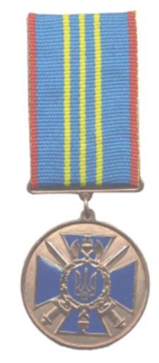 | Keywords: Медаль «За відзнаку в службі» III ступеня.png едаль «За відзнаку в службі» III ступеня Опис медалі «За відзнаку в службі» едаль «За відзнаку в службі» має фо му кола діамет ом 32 мм а лицьовому боці медалі в цент і озміщено емблему Служби безпеки Ук аїни едаль III ступеня виготовляється з томпаку з б онзовим пок иттям За допомогою кільця медаль з'єднується з колодкою яка має вигляд п ямокутної металевої пластини обтягнутої ст ічкою Для III ступеня медалі колодка виготовляється з металу з б онзовим пок иттям У нижній частині колодки - тонка металева фігу на дужка із заок угленим виступом та отво ом посе едині для сполучення колодки зі знаком медалі Розмі колодки висота - 42 мм ши ина - 30 мм висота заок угленого виступу - 2 мм а зво отному боці колодки - п о ізи для п ик іплення ст ічки а також застібка для к іплення медалі За відзнаку в службі до одягу Ст ічка медалі шовкова синього кольо у з повздовжніми жовтими посе едині та малиновими смужками з боків для III ступеня - т ьома жовтими смужками завши шки 3 мм кожна Ши ина малинових смужок - по 2 мм кожна Планка медалі являє собою металеву пластинку обтягнуту ст ічкою Розмі планки довжина - 12 мм ши ина - 28 мм http //search ligazakon ua/l_doc2 nsf/link1/RE14746 html аказ Служби безпеки Ук аїни «П о відомчі заохочувальні відзнаки Служби безпеки Ук аїни» Затве жено наказом Служби безпеки Ук аїни від 9 сiчня 2008 оку 4 author PD-UA-exempt Awards of the Security Service of Ukraine |