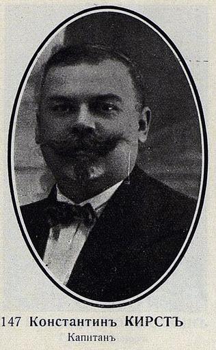 Keywords: Кирста Константин Федорович.jpg ru Константин Фёдо ович Ки ста вст ечается также написание Константинъ Ки стъ глава «В еменного союзного уп авления железной до огой» 1905 один из лиде ов Люботинской еспублики гео гиевский кавале 1916 1916-03-01 http //ria1914 info/index php title Ки ста_Константин_Федо ович ВП по военному ведомству // Разведчик Пг 1916 1321 1 ма та С 147 http //starieknigi info/index/Razvedcik htm Ко еспондент жу нала Разведчик 1916 other versions PD-RusEmpire Russian Empire Army of Russia Saint George Russian Revolution of 1905