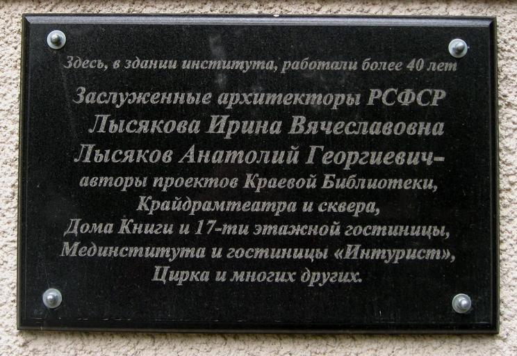 Keywords: Мемориальная доска архитекторам И. В. Лысяковой и А. Г. Лысякову.jpg А Г Лысякове на здании в кото ом асполагался институт «Став опольаг оп омп оект» own 19 мая 2016 A Tanchugin CC-Zero A Tanchugin PD-trivial Original upload log ru wikipedia ftcg page ru wikipedia D0 9C D0 B5 D0 BC D0 BE D1 80 D0 B8 D0 B0 D0 BB D1 8C D0 BD D0 B0 D1 8F_ D0 B4 D0 BE D1 81 D0 BA D0 B0_ D0 B0 D1 80 D1 85 D0 B8 D1 82 D0 B5 D0 BA D1 82 D0 BE D1 80 D0 B0 D0 BC_ D0 98 _ D0 92 _ D0 9B D1 8B D1 81 D1 8F D0 BA D0 BE D0 B2 D0 BE D0 B9_ D0 B8_ D0 90 _ D0 93 _ D0 9B D1 8B D1 81 D1 8F D0 BA D0 BE D0 B2 D1 83 jpg wikitable - 13 31 20 May 2016 2 272 × 1 564 1 154 529 bytes A Tanchugin w ru Изоб ажение описание емо иальная доска установленная в память о заслуженных а хитекто ах РСФСР И В Лысяковой и Лысяков Анато Stavropol Taken with Canon PowerShot A3150 IS |