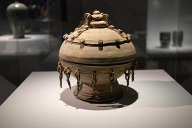 Keywords: 토제 영락 장식 유개고배.jpg en Mounted Bowl with Cover and Pendants Stoneware Unified Silla 7th Century own Motoko C K 2016-11-03 Ceramics of the Silla Kingdom Collections of the Ewha Womans University Museum cc-zero