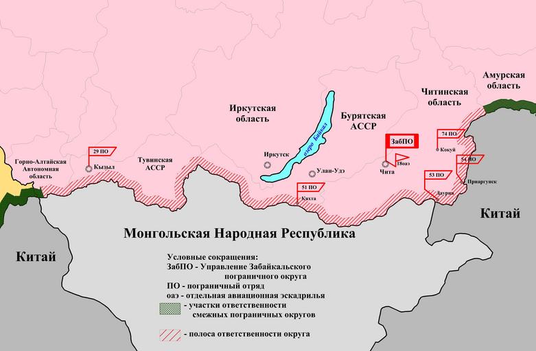 | Keywords: ЗабПО.jpg map ru Забайкальский пог аничный ок уг КГБ СССР на 1991 год Расположение от ядов Данные взяты из этого источника - http //shieldandsword mozohin ru/kgb5491/troops/border_guard htm 2016-04-28 own Kalabaha1969 other versions cc-zero Soviet Border Troops 1954-1991 Maps in Russian |