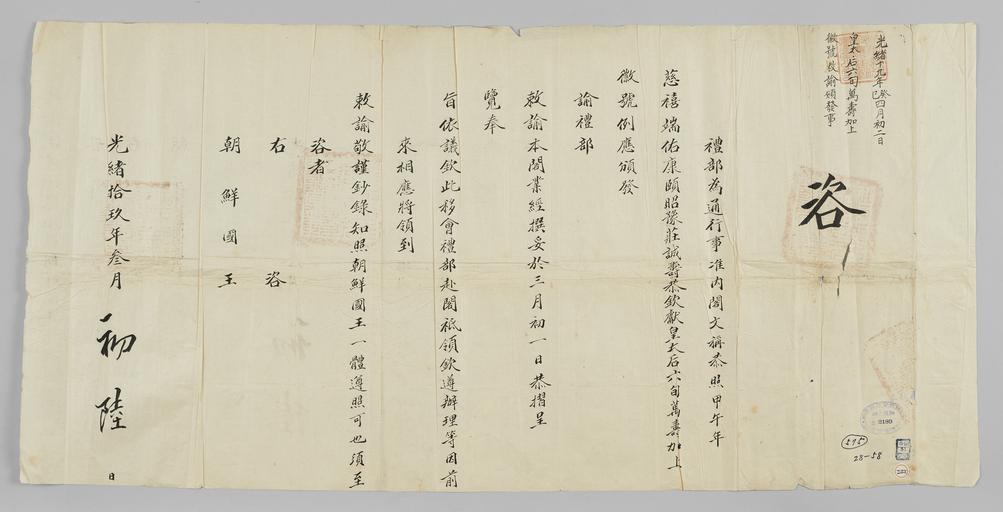 | Keywords: 조선-청 외교문서(자문) 047.jpg ko 皇太後旬萬壽加上徽號敎 頒發事를 禮部 터 移咨4 2日 接受 2016-07-18 http //www nl go kr/nl/search/SearchDetail nl category_code ct service KOLIS vdkvgwkey 1130299 colltype DAN_OLD place_code_info 172 place_name_info EB 94 94 EC A7 80 ED 84 B8 EC 97 B4 EB 9E 8C EC 8B A4 manage_code MA shape_code B refLoc null category srchFlag Y h_kwd E5 8F A4 E6 9C 9D51- EB 8B A428-58 lic_yn N mat_code RB 국립중앙도 조선국왕 수급 청국예 급 other versions PD-Art Books from National Library of Korea Books from Korea 1893 in Relations of the Joseon Dynasty and the Qing Dynasty |