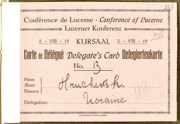 View Original: | Посвідчення делегата Люцернської конференції на ім’я М. С. Грушевського.jpg (900x625) | |||