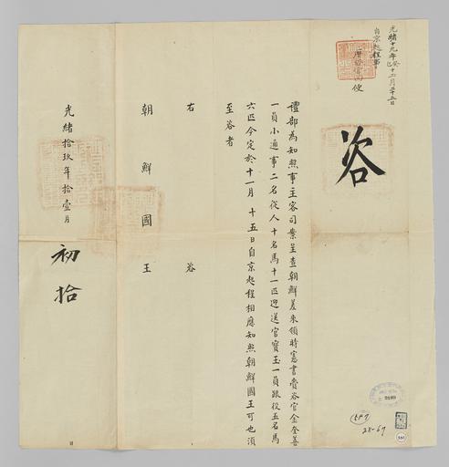 | Keywords: 조선-청 외교문서(자문) 054.jpg ko 鮮 差來領時憲書賚咨官金奎善等 竣事回 할세 11 15日自京起程 知照하는 禮 터 移咨12 25日復命 2016-07-18 http //www nl go kr/nl/search/SearchDetail nl category_code ct service KOLIS vdkvgwkey 1130232 colltype DAN_OLD place_code_info 172 place_name_info EB 94 94 EC A7 80 ED 84 B8 EC 97 B4 EB 9E 8C EC 8B A4 manage_code MA shape_code B refLoc null category srchFlag Y h_kwd E5 8F A4 E6 9C 9D51- EB 8B A428-67 lic_yn N mat_code RB 국립중앙도 조선국왕 수급 청국예 급 other versions PD-Art Books from National Library of Korea Books from Korea 1893 in Relations of the Joseon Dynasty and the Qing Dynasty |