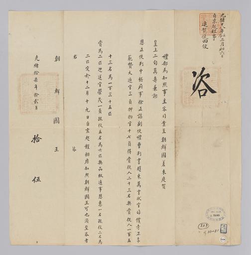 Keywords: 조선-청 외교문서(자문) 067.jpg 고종 28년 1891 2월 15 에 청국 예 에 조선국왕에게 보내 온 문 황 만수 萬壽 경하 겸 사 하기 해 파견 정사 정 徐正諄 사 조동만 趙 萬 장 범찬 範贊 등 행 작년 12월 19 에 북경에 도착하 다고 알리는 내용 다 2016-07-18 http //www nl go kr/nl/search/SearchDetail nl category_code ct service KOLIS vdkvgwkey 1130247 colltype DAN_OLD place_code_info 172 place_name_info EB 94 94 EC A7 80 ED 84 B8 EC 97 B4 EB 9E 8C EC 8B A4 manage_code MA shape_code B refLoc null category srchFlag Y h_kwd E5 8F A4 E6 9C 9D51- EB 8B A428-81 lic_yn N mat_code RB 국립중앙도 조선국왕 수급 청국예 급 other versions PD-Art Books from National Library of Korea Books from Korea 1891 in Relations of the Joseon Dynasty and the Qing Dynasty |