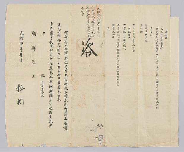 Keywords: 조선-청 외교문서(자문) 086.jpg 고종 17년 1880 7월 18 에 청국 예 에 조선국왕에게 보내 온 문 작년 사신 고 온 사 공물 留抵 하 다 정공 正貢 에 보충 키고 사신에게 비단 추 포상해 것에 해 조선국왕 감사 자문 보낸 것에 해 알았다고 전하는 내용 다 2016-07-18 http //www nl go kr/nl/search/SearchDetail nl category_code ct service KOLIS vdkvgwkey 1130059 colltype DAN_OLD place_code_info 172 place_name_info EB 94 94 EC A7 80 ED 84 B8 EC 97 B4 EB 9E 8C EC 8B A4 manage_code MA shape_code B refLoc null category srchFlag Y h_kwd E5 8F A4 E6 9C 9D51- EB 8B A428-120 lic_yn N mat_code RB 국립중앙도 조선국왕 청국예 other versions PD-Art Books from National Library of Korea Books from Korea 1880 in Relations of the Joseon Dynasty and the Qing Dynasty |