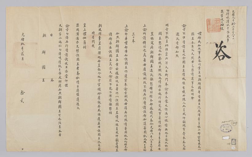 Keywords: 조선-청 외교문서(자문) 108.jpg 고종 20년 1883 2월 12 에 청국 예 에 조선국왕에게 보내 온 문 조선국왕에게 보정 에 안치 원군 하 昰應 방 허 하 않 번거롭게 하 말 고 답하는 내용 다 2016-07-18 http //www nl go kr/nl/search/SearchDetail nl category_code ct service KOLIS vdkvgwkey 1130196 colltype DAN_OLD place_code_info 172 place_name_info EB 94 94 EC A7 80 ED 84 B8 EC 97 B4 EB 9E 8C EC 8B A4 manage_code MA shape_code B refLoc null category srchFlag Y h_kwd E5 8F A4 E6 9C 9D51- EB 8B A428-166 lic_yn N mat_code RB 국립중앙도 조선국왕 청국예 other versions PD-Art Books from Korea Books from National Library of Korea 1883 in Relations of the Joseon Dynasty and the Qing Dynasty |