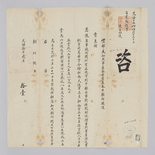 Keywords: 조선-청 외교문서(자문) 140.jpg 고종 21년 1884 2월 11 에 청국 예 에 조선국왕에게 보내 온 문 조선에 파견 진공 겸 사 사 정사 민종묵 등 사신 행 마치고 달 21 에 북경에 다고 알리는 내용 다 2016-07-18 http //www nl go kr/nl/search/SearchDetail nl category_code ct service KOLIS vdkvgwkey 1130154 colltype DAN_OLD place_code_info 172 place_name_info EB 94 94 EC A7 80 ED 84 B8 EC 97 B4 EB 9E 8C EC 8B A4 manage_code MA shape_code B refLoc null category srchFlag Y h_kwd E5 8F A4 E6 9C 9D51- EB 8B A428-205 lic_yn N mat_code RB 국립중앙도 조선국왕 청국예 other versions PD-Art Books from National Library of Korea Books from Korea 1884 in Relations of the Joseon Dynasty and the Qing Dynasty |