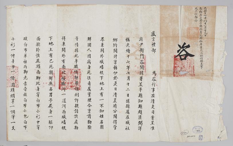 Keywords: 조선-청 외교문서(자문) 180.jpg 고종 28년 1891 에 청국 예 에 조선국왕에게 보내 온 문 미 죽 채 견 조선 무명 無名 남자 신 연공사신과 동반해 온 원역 員役 에게 만들어 장 歸葬 하 고 에 해 알리는 내용 다 문 뒷 분 결 되어 자세 전모를 파악하기 어렵다 2016-07-19 http //www nl go kr/nl/search/SearchDetail nl category_code ct service KOLIS vdkvgwkey 1130256 colltype DAN_OLD place_code_info 172 place_name_info EB 94 94 EC A7 80 ED 84 B8 EC 97 B4 EB 9E 8C EC 8B A4 manage_code MA shape_code B refLoc null category srchFlag Y h_kwd E5 8F A4 E6 9C 9D51- EB 8B A428-253 lic_yn N mat_code RB 국립중앙도 조선국왕 청국예 other versions PD-Art Books from National Library of Korea Books from Korea 1891 in Relations of the Joseon Dynasty and the Qing Dynasty |