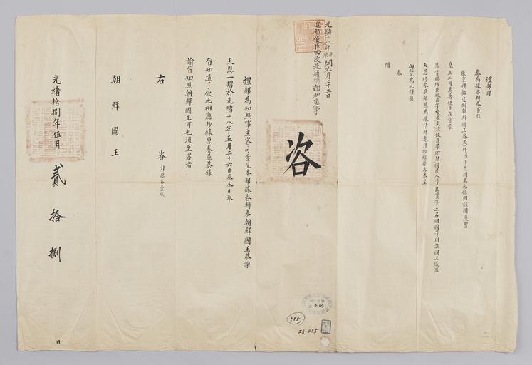 | Keywords: 조선-청 외교문서(자문) 182.jpg 고종 29년 1892 5월 28 에 청국 예 에 조선국왕에게 보내 온 문 청 황 20세 맞 해 진하 사신들 상 받고 조선 양실 등 3명 사신 편에 돌려보내 것에 해 조선국왕 올린 감사 황 에게 아뢰었 알리는 내용 다 2016-07-19 http //www nl go kr/nl/search/SearchDetail nl category_code ct service KOLIS vdkvgwkey 1130279 colltype DAN_OLD place_code_info 172 place_name_info EB 94 94 EC A7 80 ED 84 B8 EC 97 B4 EB 9E 8C EC 8B A4 manage_code MA shape_code B refLoc null category srchFlag Y h_kwd E5 8F A4 E6 9C 9D51- EB 8B A428-255 lic_yn N mat_code RB 국립중앙도 조선국왕 청국예 other versions PD-Art Books from National Library of Korea Books from Korea 1892 in Relations of the Joseon Dynasty and the Qing Dynasty |