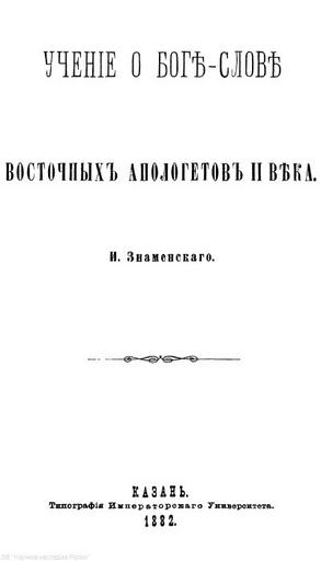 Keywords: Знаменский И С Учение о Боге-Слове у восточных апологетов II века.jpg ru Титульный лист книги И С Знаменского Учение о Боге-Слове у восточных апологетов II века опубликованной в Казани в 1882 году 2016-04-21 08 43 04 http //e-heritage ru/ras/view/publication/general html id 42096236 author other versions PD-old-70-1923 Books about Christianity from Russia Books from Russia 1882 Books published in Kazan |