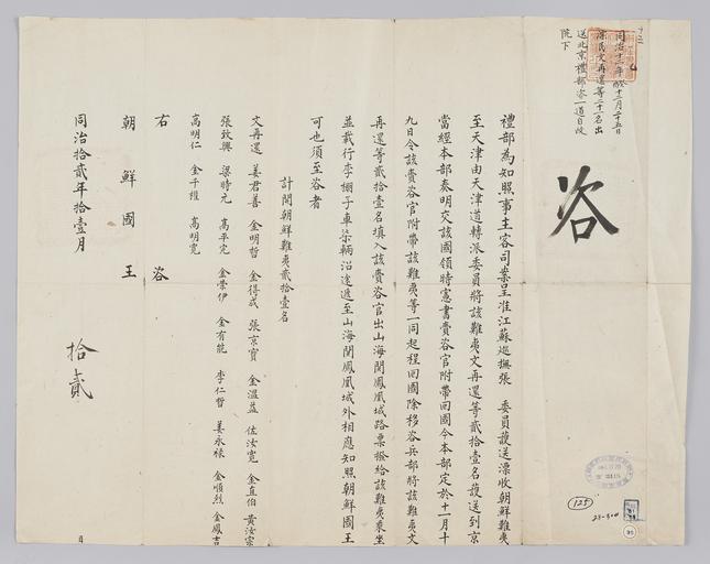| Keywords: 조선-청 외교문서(자문) 226.jpg 고종 10년 1873 11월 12 에 청국 예 에 조선국왕에게 보내 온 문 강소성에 터 호송하여 온 조선 민 문재환 등 21명 헌 재자 돌아 는 편에 달려 보낸다고 통보하고 민 문재환·강군선 君善 등 21명 명단 적 있다 2016-07-19 http //www nl go kr/nl/search/SearchDetail nl category_code ct service KOLIS vdkvgwkey 1130317 colltype DAN_OLD place_code_info 172 place_name_info EB 94 94 EC A7 80 ED 84 B8 EC 97 B4 EB 9E 8C EC 8B A4 manage_code MA shape_code B refLoc null category srchFlag Y h_kwd E5 8F A4 E6 9C 9D51- EB 8B A428-304 lic_yn N mat_code RB 국립중앙도 조선국왕 청국예 other versions PD-Art Books from National Library of Korea Books from Korea 1873 in Relations of the Joseon Dynasty and the Qing Dynasty |