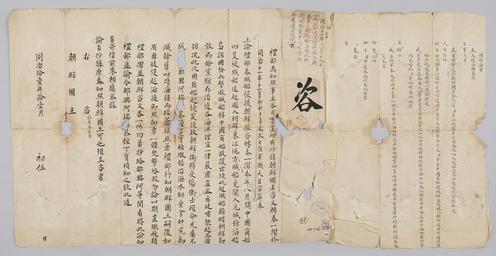 Keywords: 조선-청 외교문서(자문) 228.jpg 고종 9년 1872 11월 5 에 청국 예 에 조선국왕에게 보내 온 문 조선 경내에 비적선 匪賊船 에 쫓겨 온 중국 상선 4척 보호하고 비적 격파하느 고 조선 군사 사상 死傷 되었다는 조선국왕 보고에 하여 산동 무사 山 巡撫使 에게 명하여 해적들 소탕하도 명 내렸 알리는 문 다 2016-07-19 http //www nl go kr/nl/search/SearchDetail nl category_code ct service KOLIS vdkvgwkey 1130367 colltype DAN_OLD place_code_info 172 place_name_info EB 94 94 EC A7 80 ED 84 B8 EC 97 B4 EB 9E 8C EC 8B A4 manage_code MA shape_code B refLoc null category srchFlag Y h_kwd E5 8F A4 E6 9C 9D51- EB 8B A428-306 lic_yn N mat_code RB 국립중앙도 조선국왕 청국예 other versions PD-Art Books from National Library of Korea Books from Korea 1872 in Relations of the Joseon Dynasty and the Qing Dynasty |