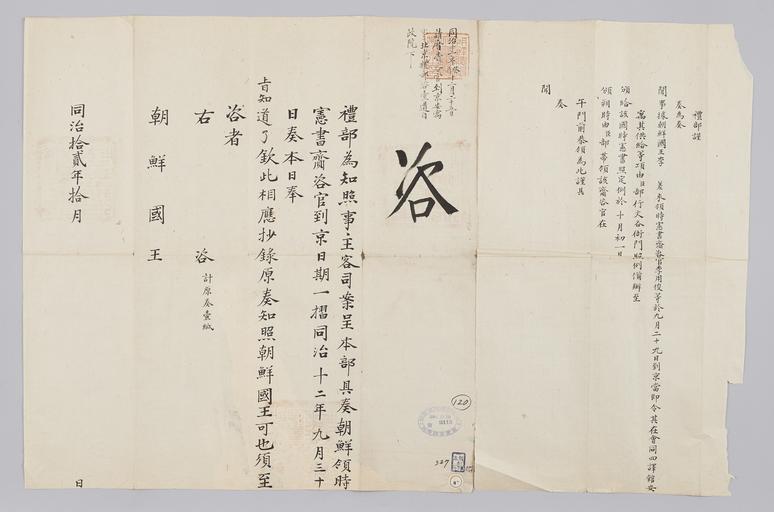| Keywords: 조선-청 외교문서(자문) 249.jpg 고종 10년 1873 10월에 청국 예 에 조선국왕에게 보내 온 문 조선에 온 헌 재자 용 등 9월 29 에 북경에 도착하여 회동 사역 에 머물고 있 알리는 내용 다 2016-07-19 http //www nl go kr/nl/search/SearchDetail nl category_code ct service KOLIS vdkvgwkey 1130322 colltype DAN_OLD place_code_info 172 place_name_info EB 94 94 EC A7 80 ED 84 B8 EC 97 B4 EB 9E 8C EC 8B A4 manage_code MA shape_code B refLoc null category srchFlag Y h_kwd E5 8F A4 E6 9C 9D51- EB 8B A428-327 lic_yn N mat_code RB 국립중앙도 조선국왕 청국예 other versions PD-Art Books from National Library of Korea Books from Korea 1873 in Relations of the Joseon Dynasty and the Qing Dynasty |