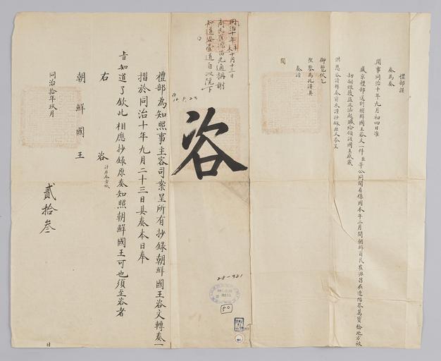 Keywords: 조선-청 외교문서(자문) 298.jpg 고종 8년 1871 9월 23 에 청국 예 에 조선국왕에게 보내 온 문 2월 조선 상민 商民 원창 崔源昌 요양 遼陽 역에 피겁 被劫 되었던 바 를 잘 처리해 데 조선국왕 올린 감사 문 황 에게 올렸 알리는 내용 다 2016-07-19 http //www nl go kr/nl/search/SearchDetail nl category_code ct service KOLIS vdkvgwkey 1130392 colltype DAN_OLD place_code_info 172 place_name_info EB 94 94 EC A7 80 ED 84 B8 EC 97 B4 EB 9E 8C EC 8B A4 manage_code MA shape_code B refLoc null category srchFlag Y h_kwd E5 8F A4 E6 9C 9D51- EB 8B A428-381 lic_yn N mat_code RB 국립중앙도 조선국왕 청국예 other versions PD-Art Books from National Library of Korea Books from Korea 1871 in Relations of the Joseon Dynasty and the Qing Dynasty |