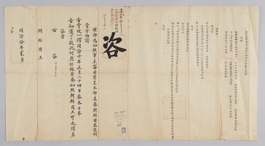 | Keywords: 조선-청 외교문서(자문) 302.jpg 고종 8년 1871 2월에 청국 예 에 조선국왕에게 보내 온 문 조선에 보낸 공물 貢物 받았 알리는 내용 다 황세하포 黃細夏布 1750필 등 공물 내역 적 있다 2016-07-19 http //www nl go kr/nl/search/SearchDetail nl category_code ct service KOLIS vdkvgwkey 1130406 colltype DAN_OLD place_code_info 172 place_name_info EB 94 94 EC A7 80 ED 84 B8 EC 97 B4 EB 9E 8C EC 8B A4 manage_code MA shape_code B refLoc null category srchFlag Y h_kwd E5 8F A4 E6 9C 9D51- EB 8B A428-385 lic_yn N mat_code RB 국립중앙도 조선국왕 청국예 other versions PD-Art Books from National Library of Korea Books from Korea 1871 in Relations of the Joseon Dynasty and the Qing Dynasty |