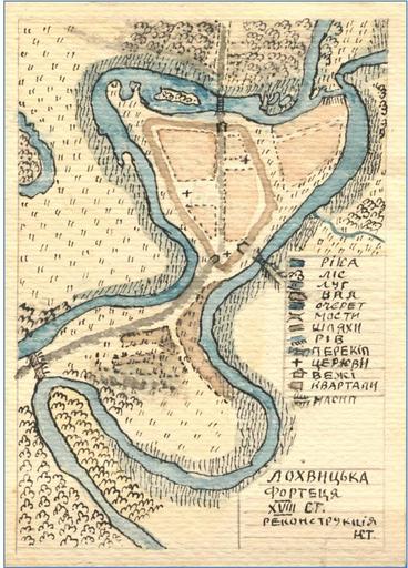 Keywords: План Лохвицької фортеці.jpg uk План Лохвицької фо теці XVII ст оз облений Тимофієм Яковичем К естінським пе ший ди екто Лохвицького к аєзнавчого музею Own Во она Олександ 2014 Cc-zero