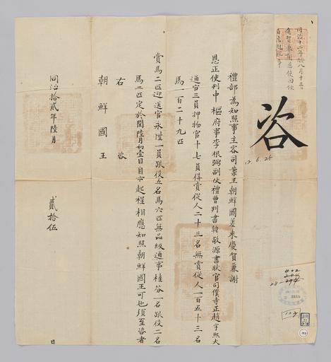 | Keywords: 조선-청 외교문서(자문) 318.jpg 고종 10년 1873 6월 25 에 청국 예 에 조선국왕에게 보내 온 문 조선에 보낸 경하 겸 사 사 정사 근필 등 행 마치고 달 1 에 북경 다고 알리는 내용 다 2016-07-19 http //www nl go kr/nl/search/SearchDetail nl category_code ct service KOLIS vdkvgwkey 1130339 colltype DAN_OLD place_code_info 172 place_name_info EB 94 94 EC A7 80 ED 84 B8 EC 97 B4 EB 9E 8C EC 8B A4 manage_code MA shape_code B refLoc null category srchFlag Y h_kwd E5 8F A4 E6 9C 9D51- EB 8B A428-402 lic_yn N mat_code RB 국립중앙도 조선국왕 청국예 other versions PD-Art Books from National Library of Korea Books from Korea 1873 in Relations of the Joseon Dynasty and the Qing Dynasty |