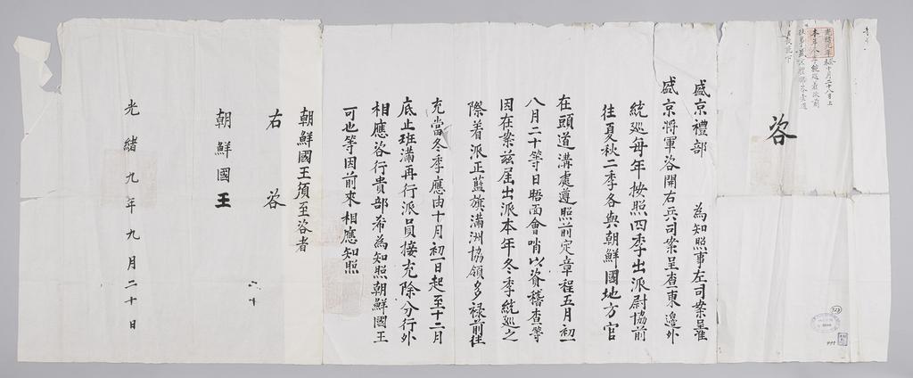 | Keywords: 조선-청 외교문서(자문) 347.jpg  고종 20년 1883 9월 20 에 청국 예 에 조선국왕에게 보내 온 문 올해 10월 1  터 12월까 동계 통 에 만주 滿州 협령  協領尉 다 多祿   파견 다고 알리는 내용 다 2016-07-20 http //www nl go kr/nl/search/SearchDetail nl category_code ct service KOLIS vdkvgwkey 1130175 colltype DAN_OLD place_code_info 172 place_name_info EB 94 94 EC A7 80 ED 84 B8 EC 97 B4 EB 9E 8C EC 8B A4 manage_code MA shape_code B refLoc null category srchFlag Y h_kwd E5 8F A4 E6 9C 9D51- EB 8B A428-495 lic_yn N mat_code RB 국립중앙도  조선국왕 청국예 other versions PD-Art Books from National Library of Korea Books from Korea 1883 in Relations of the Joseon Dynasty and the Qing Dynasty |