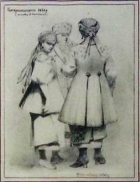 | Keywords: Ждаха Дівчата та жінки в білому кіндяку з Катеринославщини.jpg uk З альбому А Ждахи Ук аина и Запо ожье «Ук аїна - Козацька де жава» Київ 2007 Емма decade 1890 Creator Amvrosiy Zhdakha PD-old-70 Ukraine and Zaporozhie - album by Zhdakha Амvrosii |