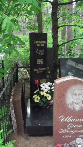 | Keywords: Чистяковы.jpg ru Памятник на Сест о ецком кладбище Чистяковым в т ч и Фёдо у Фёдо овичу 1922-1942 - Ге ою Великой Отечественной Войны В апо те команди а за шести часовой бой 6 июня 1942 года в кото ом Чистяков уничтожил п о ываясь из ок ужения более 200 фашистов Фёдо Фёдо ович п едставлен к званию Ге оя Советского Союза и был наг аждён О деном Ленина Уме в госпитале 2 нояб я 1942 года и похо онен у де евни Самбатово В 1952 году его именем названа улица в айцент е Самбатово ате иалы о Ф Чистякове имеются в школьном музее 1 Уда ной А мии own Пёт Иванов 2016 Sestroretsk cemetery Cc-zero |