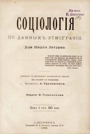 View Original: | Летурно Ш. Социология по данным этнографии. (1896) — Тит. лист.jpg (852x1272) | |||