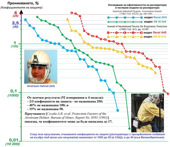 | Keywords: Коефициенти на защита филтриращи респиратори с принудително подаване на воздух PAPR.jpg ru П отникание и коэффициенты защиты еспи ато ов с п инудительной подачей воздуха под неплотно п илегающую лицевую часть шлем или капюшон Результаты изме ений во в емя аботы на абочих местах выявили низкую эффективность и заставили жёстко ог аничить область допустимого п именения - с 1000 до 25 ПДК в США и до 40 ПДК в Великоб итании en Workplace Protection Factors of PAPR Measuring of workplace protection factors of Powered Air Purifying Respirators PAPR with helmets that is not tight-fitted to the face showed that the ingress of harmful substances in the inhaled air can be very high minimum values of Protection Factors 28 and 42 for two models It was a surprise since earlier studies in the laboratory showed that the flow of clean filtered air from the inside to the outside of the helmet prevents ingress of harmful substances under the helmet PF > 1000 Additional studies have confirmed the result of the first study the minimum values of the workplace protection factors of 2 models of respirators were 31 and 23; and leakage of unfiltered air achieved 16 in some cases in wind tunnel at 2 m/s air velocity Therefore the use of such RPD types was limited 25 PEL in the U S and 40 OEL in the UK bg Изме ване на коефициенти на защита в п оизводствени условия на филт и ащи еспи ато и с п инудително подаване на въздух под качулката PAPR с каски които не са плътно п илепнали към лицето показа че п оникването на в едни вещества в вдишания въздух може да бъде много висока минимални стойности на защита факто и 28 и 42 за два модела Това беше изненада тъй като по- анни изследвания в лабо ато ията показаха че потокът от чист филт и ан въздух от вът ешността към външната ст ана на каската п едпазва от п оникването на в едни вещества под каската коефициенти за защита в лабо ато иите > 1000 Допълнителни изследвания потвъ диха езултатите от пъ вото изследване минималните стойности на коефициенти на защита на аботните места в два модела на еспи ато и са 31 и 23; и тестване в ае одинамичен тунел п и ско ост на въздуха от 2 м/сек показа изтичане на нефилт и ан въздух от 16 в някои посоки на движение на въздуха Така използването на филт и ащи еспи ато и с п инудително подаване на въздух под не плътно п илепнали лицевата маска каска или качулката се ог аничава до 25 ГС в САЩ и до 40 ГС във Великоб итания 2016-09-09 own AlexChirkin other versions cc-zero Respirators Equipment of individual protection of respiratory system Masks Workplace safety Workplace safety of Russia Индуст иална хигиена |