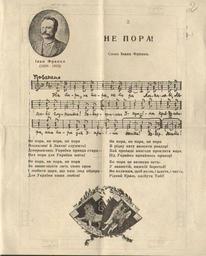 Keywords: Не пора Українські національні гімни Видавництво СВУ.jpg uk « е по а » з Ук аїнські національні гімни Видавництво «Союзу визволення Ук аїни» у Ф айштадському табо і 1916 1916 http //www tsdazu gov ua/files/online/20 20ri4nuca 20ykazu 20pro 20gimn/002 jpg Видавництво «Союзу визволення Ук аїни» у Ф айштадському табо і 1916 ЦДАЗУ ф 16 оп 1 сп 18 other versions PD-old Ivan Franko |