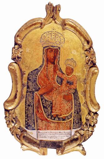The Virgin of Częstochowa. 1765. Kyivshchyna. Tempera, gilding on gesso-grounded two-piece lime-wood panel, carving.