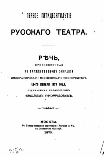 | Keywords: история русского театра историярусскоготеатра тихонравов 1873 скриншот blackandwhite monochrome text outdoor black and white Первое пятидесятилетие русского театра Тихонравов Н.С. М. 1873 г. 35 pages Тихонравов Николай Саввич (1832-1893) - русский литературовед, археограф, академик Петербургской АН (1890). Источник: www.knigafund.ru/books/8610 Первое пятидесятилетие русского театра Тихонравов Н.С. М. 1873 г. 35 pages Тихонравов Николай Саввич (1832-1893) - русский литературовед, археограф, академик Петербургской АН (1890). Источник: www.knigafund.ru/books/8610 |