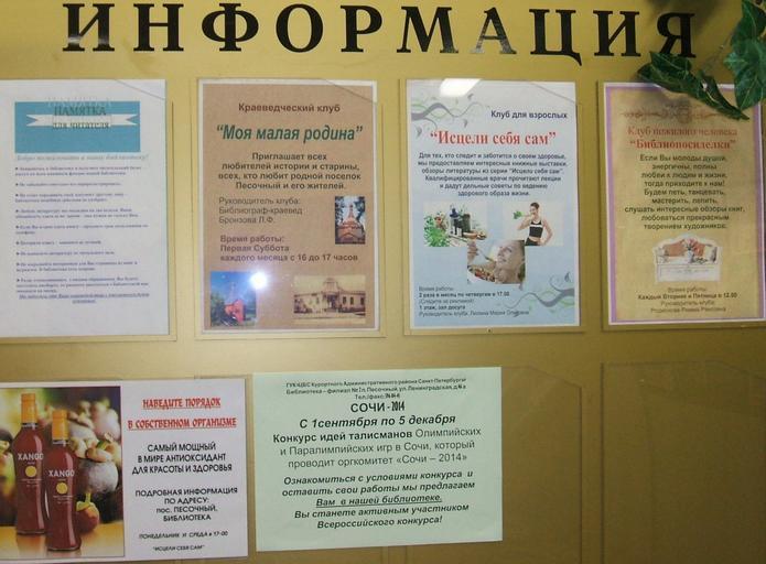 Keywords: Песочный библиотека информация.jpg ru Песочный СПб Ку о тного Инфо мация о аботе библиотеки own Пёт Иванов 2010 Libraries of Kurortny District of Saint Petersburg Pesochny Saint Petersburg