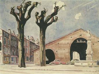 Keywords: Старый рынок в Ниме , 1962 г. Б., акварель. 64,5х87,7 art-call Artistically
