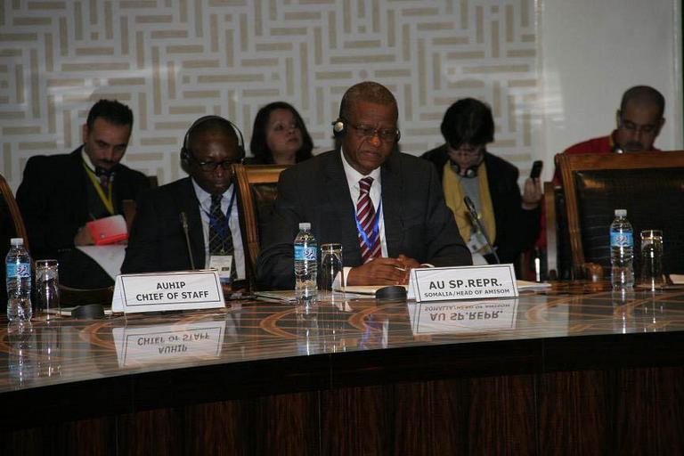 | Keywords: people indoor The African Union Mission in Somalia's Special Representative of the Chairperson of the African Union Commission (SRCC), Maman Sidikou, participates in the 2nd High Level Seminar on Peace and Security in Africa. The event was hosted by Algeria and aims to enhance engagement of African members of the UN Security Council in the hopes that they can fulfil their obligations of taking care of African issues and interests during their tenure on the Security Council. AMISOM Photo The African Union Mission in Somalia's Special Representative of the Chairperson of the African Union Commission (SRCC), Maman Sidikou, participates in the 2nd High Level Seminar on Peace and Security in Africa. The event was hosted by Algeria and aims to enhance engagement of African members of the UN Security Council in the hopes that they can fulfil their obligations of taking care of African issues and interests during their tenure on the Security Council. AMISOM Photo |