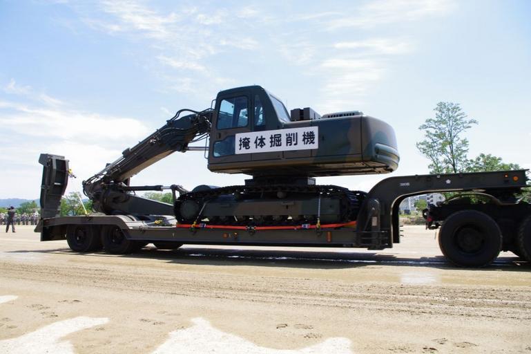 Keywords: 掩体掘削機.jpg ja 掩体掘削機 投稿 自身が撮影 Trans5885 2010-05-30 Military engineering vehicles of the JGSDF Komatsu military vehicles Military engineering vehicles Komatsu excavators Road vehicle transport trucks
