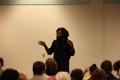 | Keywords: Award-winning author Jason Reynolds returned to Kalamazoo on Wednesday, April 13, 2016, for a Meet the Author event at Central Library. Jason recently received the prestigious Walter Dean Myers Award for Outstanding Children’s Literature, and the American Library Association’s 2016 Coretta Scott King Honor Award for outstanding African American authors. Photo by Farrell Howe. www.kpl.gov Award-winning author Jason Reynolds returned to Kalamazoo on Wednesday, April 13, 2016, for a Meet the Author event at Central Library. Jason recently received the prestigious Walter Dean Myers Award for Outstanding Children’s Literature, and the American Library Association’s 2016 Coretta Scott King Honor Award for outstanding African American authors. Photo by Farrell Howe. www.kpl.gov |