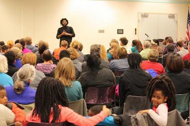 | Keywords: people Award-winning author Jason Reynolds returned to Kalamazoo on Wednesday, April 13, 2016, for a Meet the Author event at Central Library. Jason recently received the prestigious Walter Dean Myers Award for Outstanding Children’s Literature, and the American Library Association’s 2016 Coretta Scott King Honor Award for outstanding African American authors. Photo by Farrell Howe. www.kpl.gov Award-winning author Jason Reynolds returned to Kalamazoo on Wednesday, April 13, 2016, for a Meet the Author event at Central Library. Jason recently received the prestigious Walter Dean Myers Award for Outstanding Children’s Literature, and the American Library Association’s 2016 Coretta Scott King Honor Award for outstanding African American authors. Photo by Farrell Howe. www.kpl.gov |