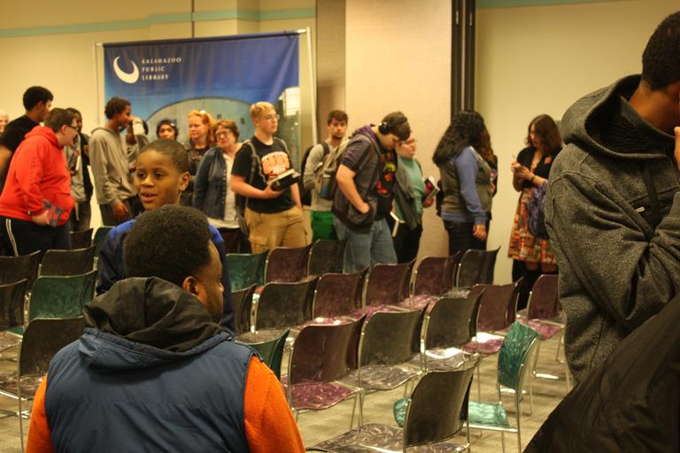 Keywords: Award-winning author Jason Reynolds returned to Kalamazoo on Wednesday, April 13, 2016, for a Meet the Author event at Central Library. Jason recently received the prestigious Walter Dean Myers Award for Outstanding Children’s Literature, and the American Library Association’s 2016 Coretta Scott King Honor Award for outstanding African American authors. Photo by Farrell Howe. www.kpl.gov Award-winning author Jason Reynolds returned to Kalamazoo on Wednesday, April 13, 2016, for a Meet the Author event at Central Library. Jason recently received the prestigious Walter Dean Myers Award for Outstanding Children’s Literature, and the American Library Association’s 2016 Coretta Scott King Honor Award for outstanding African American authors. Photo by Farrell Howe. www.kpl.gov |
