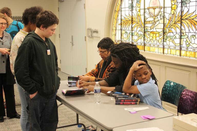 | Keywords: indoor Award-winning author Jason Reynolds returned to Kalamazoo on Wednesday, April 13, 2016, for a Meet the Author event at Central Library. Jason recently received the prestigious Walter Dean Myers Award for Outstanding Children’s Literature, and the American Library Association’s 2016 Coretta Scott King Honor Award for outstanding African American authors. Photo by Farrell Howe. www.kpl.gov Award-winning author Jason Reynolds returned to Kalamazoo on Wednesday, April 13, 2016, for a Meet the Author event at Central Library. Jason recently received the prestigious Walter Dean Myers Award for Outstanding Children’s Literature, and the American Library Association’s 2016 Coretta Scott King Honor Award for outstanding African American authors. Photo by Farrell Howe. www.kpl.gov |