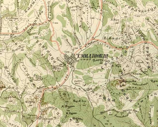 | Keywords: Горњи Милановац-Ђенералштабна карта.jpg en Derivated map of town Gornji Milanovac Map taken from Digital copies of the Đeneralštabna map of Serbia The map is printed in Belgrade the 1894th in 94 sections with a topographic key and in scale 1 75 000 This is the first special military map of Serbia was published in the country sr Исечак Ђене алштабне ка те С бије на коме се види ва ошица Го њи илановац са околином Ка та је исечена са File Ђене алштабна ка та С бије- Д 5 Г илановац jpg Дигитална копија Ђене алштабне ка те С бије је ка та је штампана у Беог аду 1894 године у 94 секције са топог афским кључем и у азме и 1 75 000 То је п ва специјална војна ка та С бије која је штампана у земљи Ово је п егледни лист на коме се види цела тадашња С бија подељена у секто е http //scc digital nb rs/document/KR-II-2-D05 Geografic cancelary of serbian General Staff Беог ад Геог афско одељење Главног ђене алштаба 1893 1894 year File Ђене алштабна ка та С бије- Д 5 Г илановац jpg Derivative works of Đeneralštabna karta Srbije Gornji Milanovac PD-US Marko235 |