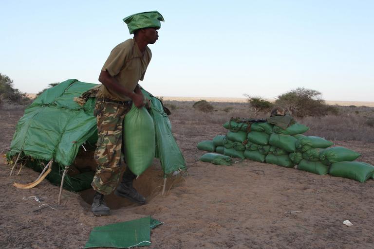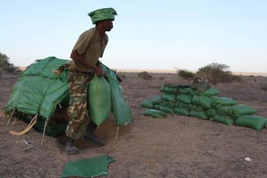Keywords: outdoor Burundian soldiers, as part of the African Union Mission in Somalia, fill sand bags to create a defensive perimeter around their base in Ragaele on October 2. The Burundian forces liberated the town from al Shabab militants two days ago. AMISOM Photo / Fanah Mohamed Burundian soldiers, as part of the African Union Mission in Somalia, fill sand bags to create a defensive perimeter around their base in Ragaele on October 2. The Burundian forces liberated the town from al Shabab militants two days ago. AMISOM Photo / Fanah Mohamed |