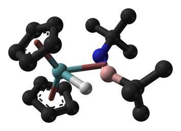 | Keywords: Iminoborane-NbCp2-complex-from-xtal-1988-3D-balls-noH.png Ball-and-stick model of the complex of tert-butyl tert-butylimino borane tBu-BN-tBu with Cp<sub>2</sub>NbH from the crystal structure Hydrogen atoms omitted for clarity except the one bonded to niobium X-ray crystallographic data from http //dx doi org/10 1002/anie 198809581 Angew Chem Int Ed 1988 27 958 959 Own 2008-03-25 Ben Mills Benjah-bmm27 Images by Ben Mills Tert-butyl tert-butylimino borane Niobium complexes Cyclopentadienyl complexes Hydrido complexes |