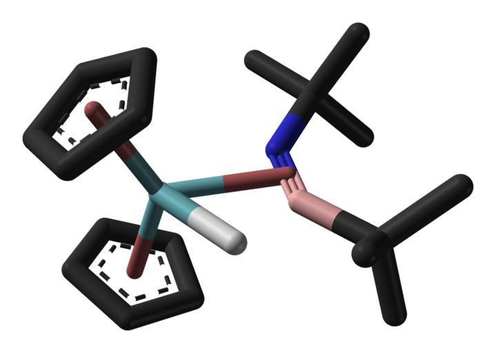| Keywords: Iminoborane-NbCp2-complex-from-xtal-1988-3D-sticks-noH.png Stick model of the complex of tert-butyl tert-butylimino borane tBu-BN-tBu with Cp<sub>2</sub>NbH from the crystal structure Hydrogen atoms omitted for clarity except the one bonded to niobium X-ray crystallographic data from http //dx doi org/10 1002/anie 198809581 Angew Chem Int Ed 1988 27 958 959 Own 2008-03-25 Ben Mills Benjah-bmm27 Images by Ben Mills Tert-butyl tert-butylimino borane Niobium complexes Cyclopentadienyl complexes |