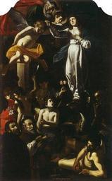 | Keywords: Immaculate Conception with Saints Dominic and Francis of Paola.jpg Artwork Creator Battistello Caracciolo en Immaculate Conception with Saints Dominic and Francis of Paola 1607 oil on canvas Institution Santa Maria della Stella Naples place of discovery object history exhibition history Naples 1938 no 1; Naples 1954 no 4; Naples 1960 pp 101 143 credit line accession number place of creation Naples http //arthistoryreference com/cgi-bin/hd exe art2 a54019 PD-old-100 cite book Bologna Ferdinando Battistello Caracciolo e il primo naturalismo a Napoli 1991 Electa Napoli 9788843537174 210 http //books google co za/books/about/Battistello_Caracciolo_e_il_primo_natura html id 7cDqAAAAMAAJ it <br/> cite book Causa Stefano Battistello Caracciolo L'opera completa 2000 Electa Napoli 9788843584932 177-178 https //books google co za/books id aMHqAAAAMAAJ it <br/> cite book Metropolitan Museum of Art New York N Y Museo e gallerie nazionali di Capodimonte The Age of Caravaggio 1985 Metropolitan Museum of Art New York 9780870993800 106 https //books google co za/books id 7f6ZdCR_DbgC <br/> cite book De Dominici Bernardo Vite de' pittori scultori ed architetti napoletani tomo terzo 1743 Naples 282 http //books google co za/books id SscOAAAAQAAJ <br/> cite book Moir Alfred The Italian followers of Caravaggio 1967 Harvard University Press Cambridge 9780674598690 160 https //books google co za/books id -TwknwEACAAJ <br/> cite book Stoughton Michael Whitfield Clovis Martineau Jane Painting in Naples 1606-1705 from Caravaggio to Giordano 1982 Royal Academy of Arts London 9780933516656 113 http //books google co za/books/about/Painting_in_Naples_1606_1705 html id H-LqAAAAMAAJ Q19819960 Uploaded with UploadWizard Battistello Caracciolo Paintings of Saint Dominic Paintings of Francis of Paola 17th-century paintings of Immaculata |