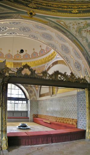 | Keywords: Imperial Council Hall Topkapi 2007a.jpg Image is slightly squished please compare original components and change maybe elongate slightly to give better impression The Imperial Council Hall Kubbealtı / Divan-ı Hümâyûn where the veziers met in council with the sultan The hearth in the middle was to warm the officials The golden window enabled the sultan or the valide sultan to eavesdrop into the conversation without being noticed Own 2007-07 Gryffindor Autostitch 100px 100px 100px 100px 100px Interior of the Imperial Council Topkapı Palace Frescos in Istanbul Topkapi Diwan Windows in Istanbul Topkapi Diwan Divans furniture |
