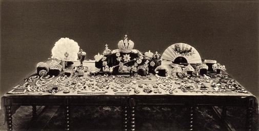 | Keywords: Imperial regalia of Russia - BW photo.jpg Знаменитое фото основной части оссийских ко онных д агоценностей и д агоценностей импе ат иц сделанное советской комиссией в 1922 г а столе п едставлены 13 диадем бандо с пчелками 4 ко оны скипет де жава и д угие ценности п ивезенные в осковский К емль 1914 г из Пет ог ада http //maxfraikiev livejournal com/38442 html 1922 anonymous PD-Russia-2008 ImageNote 1 456 111 68 74 1000 391 2 Great Imperial Crown ImageNoteEnd 1 ImageNote 2 359 186 50 36 1000 391 2 Small Imperial crown of Russia 1 ImageNoteEnd 2 ImageNote 3 563 179 34 34 1000 391 2 Small Imperial crown of Russia 2 ImageNoteEnd 3 ImageNote 4 376 141 64 57 1000 391 2 Imperial orb of Russia ImageNoteEnd 4 Russian Crown Jewels Empire Files uploaded by Shakko from various sources Great Imperial Crown Small Imperial crown of Russia Diamond Fund Imperial orb of Russia Demolished imperial crowns of Russia Coronation Collar of the Order of St Andrew Imperial sceptre of Russia Small Imperial crown of Russia Maria Fedorovna 2nd Imperial wedding crown of Russia Tiaras |