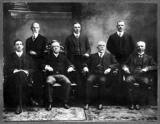 | Keywords: Inaugural Departmental Heads of the Australian Commonwealth Public Service-1901.jpg Inaugural Departmental Heads of the Australian w Commonwealth Public Service - 1901<br> Standing l-to-r w Muirhead Collins Defence ; Atlee Hunt External Affairs ; David Miller Home Affairs <br> Seated l-to-r w Robert Garran Attorney General's ; Harry Wollaston Trade and Customs ; Robert Scott Post-Master General's ; George Allen Treasury http //www dfat gov au/dept/images/1st-dfat_medium jpg 1901 author PD-Australia Uncategorized 2015 January 25 |