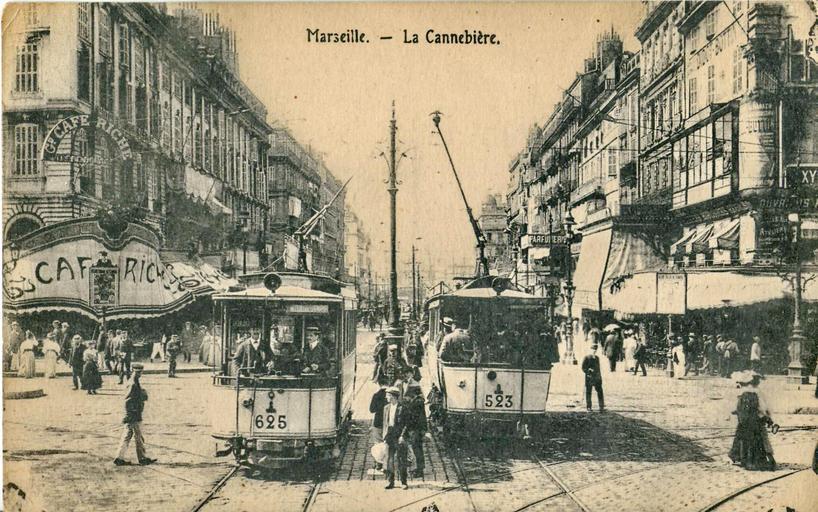| Keywords: INCONNU - Marseille - La Cannebière.JPG MARSEILLE - La Cannebière Claude Villetaneuse author before 1914 pd-old Canebière Historical trams in Marseille Number 625 on trams Number 523 on trams Black and white photographs of trams in France Tram transport in the 1900s |